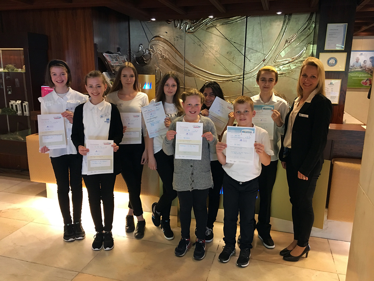 05/2017 - Bad Salzuflen. Auf einen erfolgreichen Zukunftstag für Mädchen und Jungen blicken die Bad Salzufler Beherbergungsbetriebe zurück: In acht Betrieben der Salzestadt erhielten die Kids einen Einblick in die vielfältige Berufswelt im Hotelbetrieb. Vom Housekeeping über die Rezeption bis zum Restaurant und Einblicken in die Welt einer Hotelküche lernten die Heranwachsenden viele unterschiedliche Bereiche der teilnehmenden Betriebe kennen. Dank des intensiven Einsatzes durch die jeweiligen Organisatoren blieb es dabei nicht nur bei einem "Blick in die Kochtöpfe", sondern wurde auch erstes theoretisches Wissen vermittelt. Silke Sudbrak, Personalleiterin des Maritim Hotels Bad Salzuflen: „Die Gruppen rotierten im 2 Stunden-Rhythmus, so dass jeder einen kleinen Einblick in die unterschiedlichen Arbeitsbereiche bekam. In jeder Abteilung gab es einen festen Ansprechpartner, der mit Rat und Tat zur Seite stand."